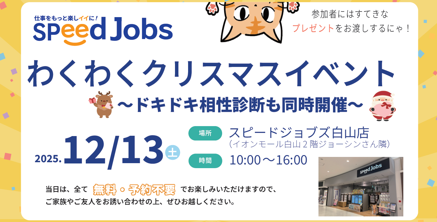 【12/13開催】わくわくクリスマスイベント in 白山店
